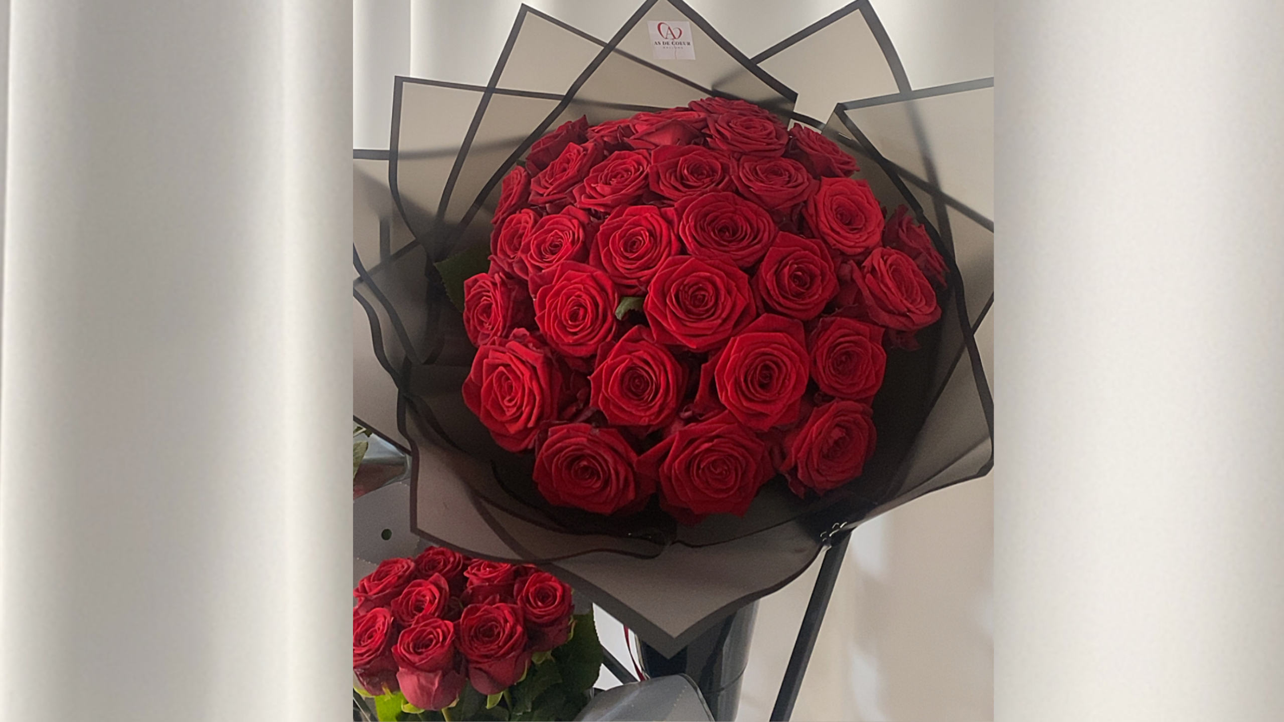 Bouquet de 30 roses fraiches de couleur rouges. Emballage au choix.