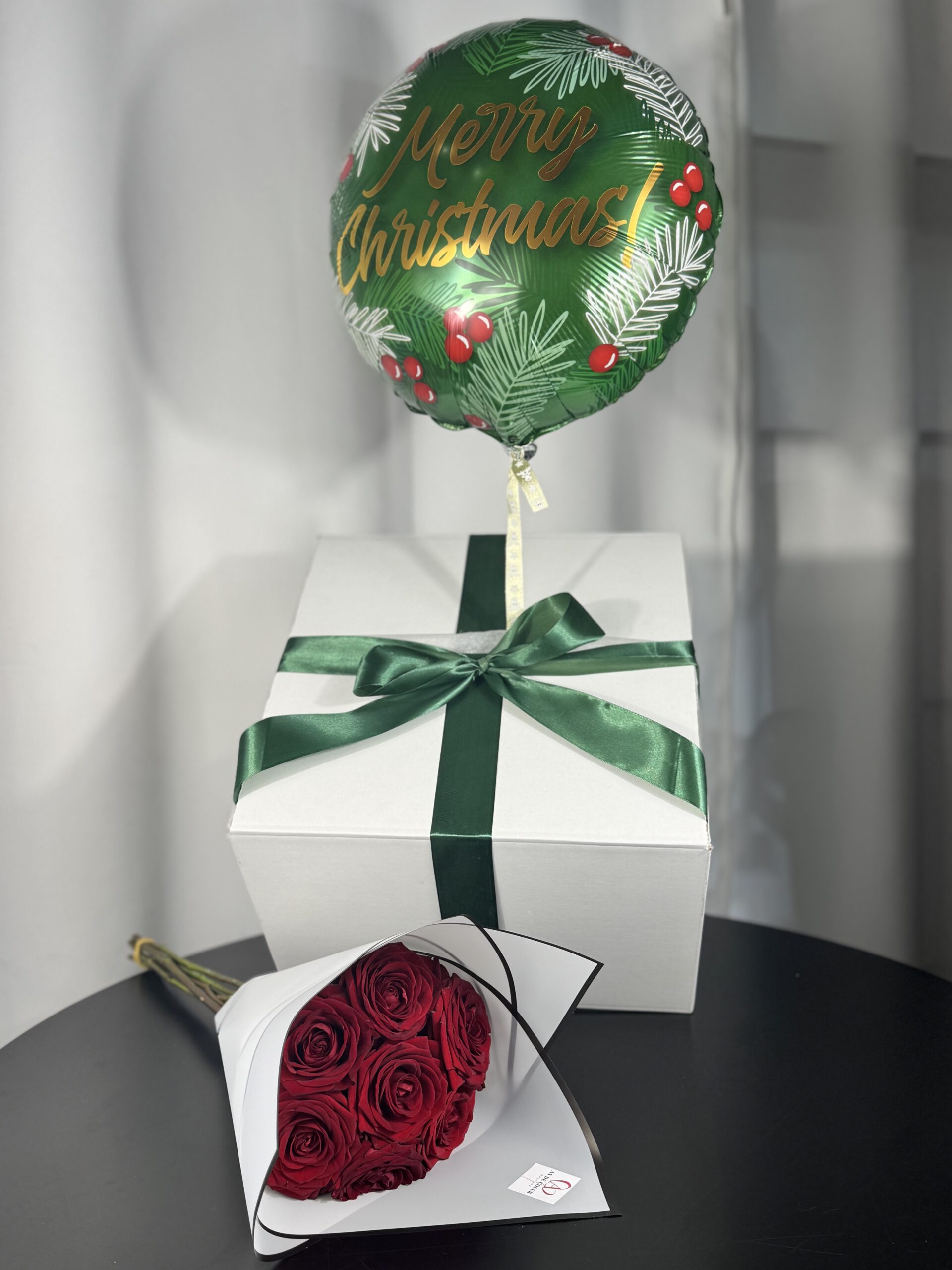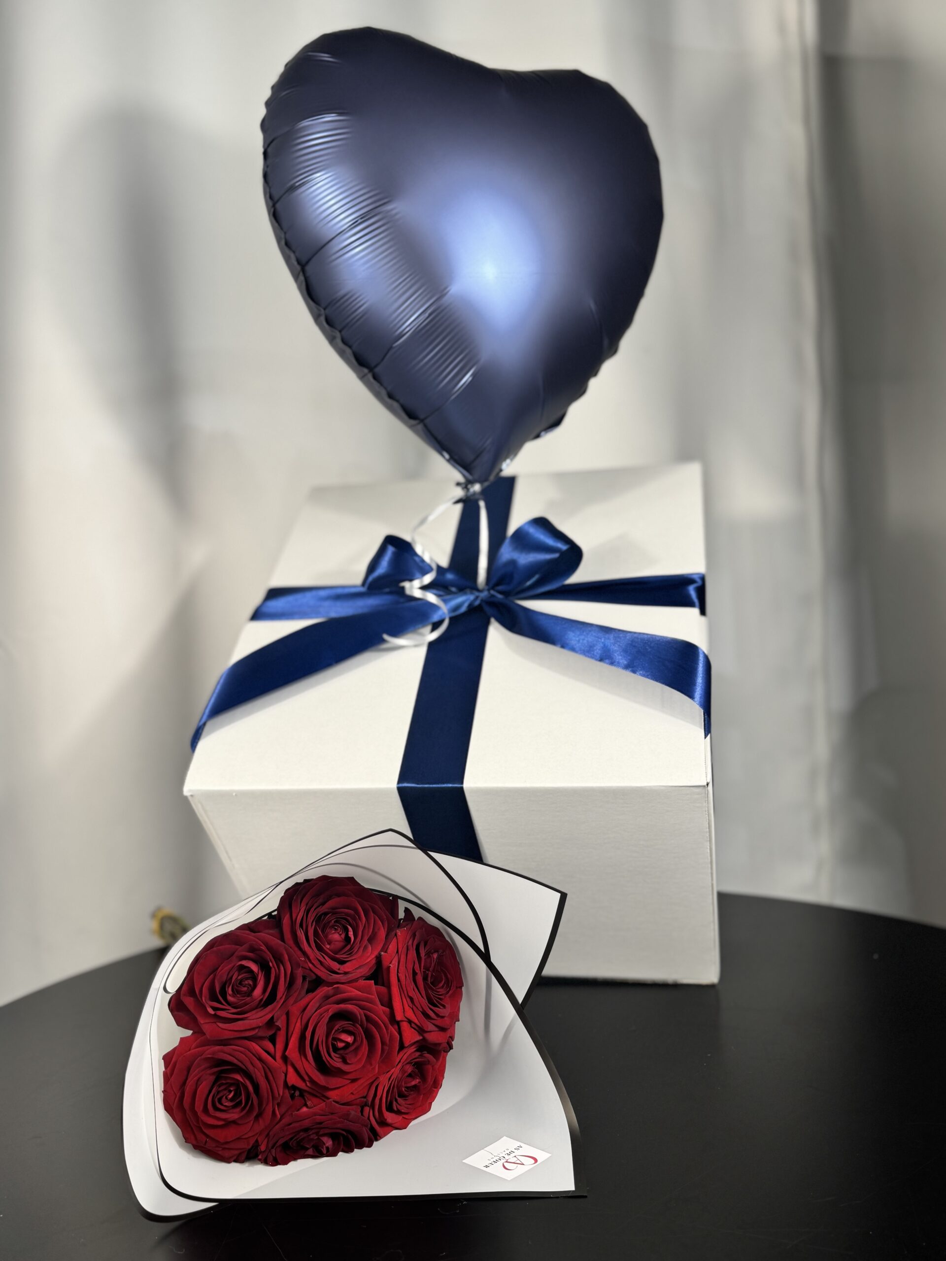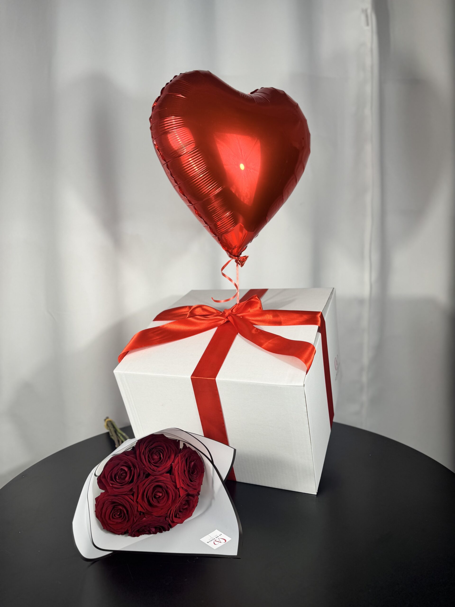 Ce coffret comporte 1 box avec 1 ballon à l’hélium, et 1 bouquet de 7 roses fraiches de couleur rouge.